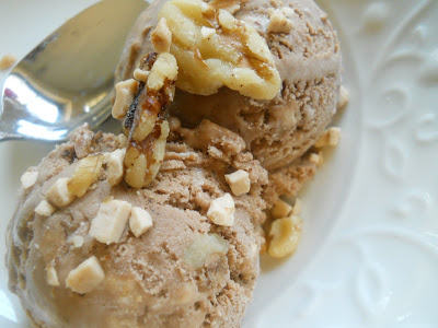 Chocolate ice cream, toffee pieces and toasted walnuts, mixed in and on top! Mercy!